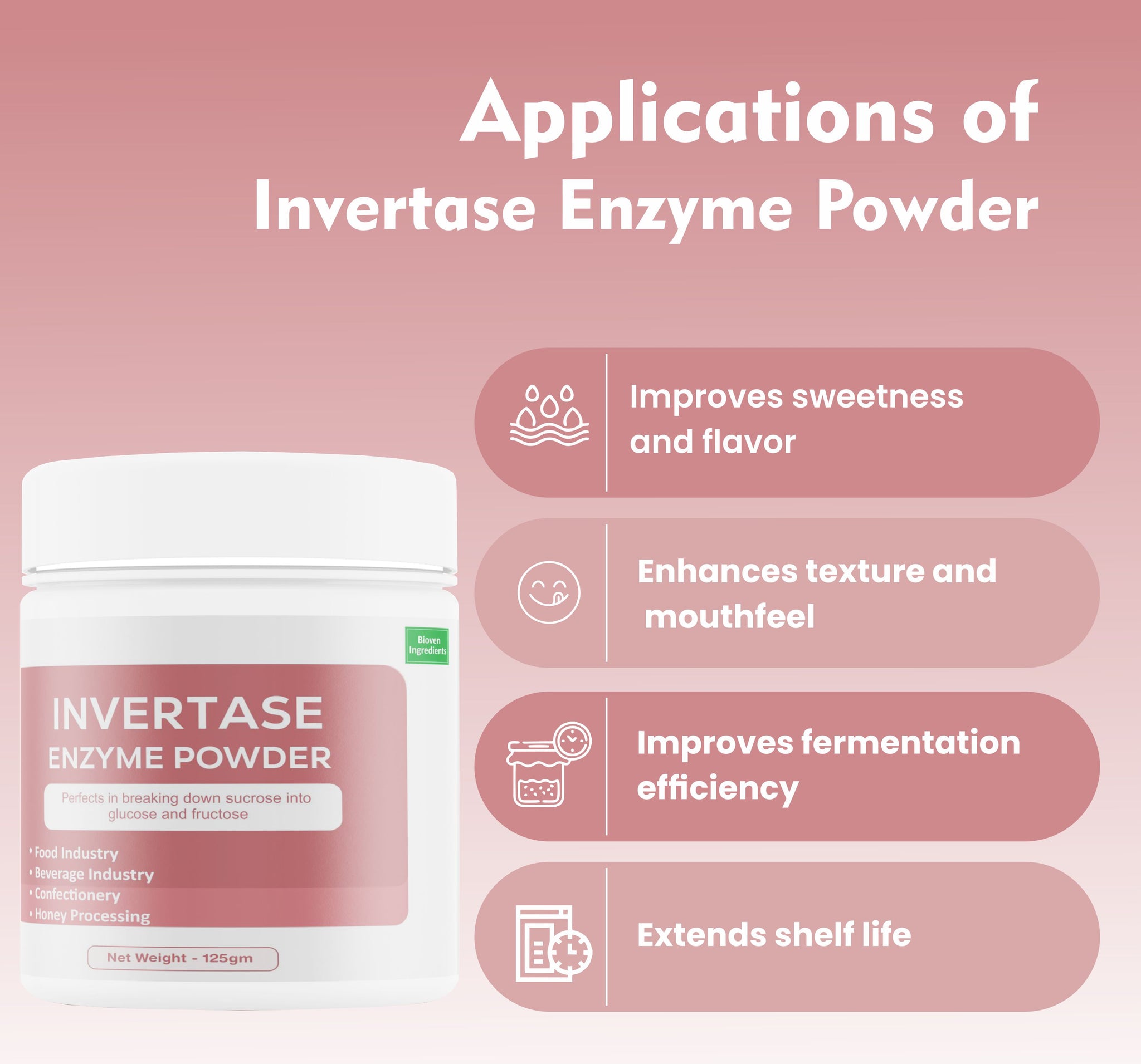 يحفز إنزيم الإنفرتاز عملية تحلل السكروز إلى جلوكوز وفركتوز. ويُستخدم هذا الإنزيم بشكل شائع في إنتاج السكر المحوّل. يُستخدم الإنفرتاز لتحلل السكروز، مما ينتج عنه مزيج متساوي المولات من الجلوكوز والفركتوز، يُعرف بالسكر المحوّل أو الشراب المحوّل. يُستخدم هذا المنتج على نطاق واسع في صناعة الأغذية نظرًا لحلاوته العالية ومقاومته للتبلور.