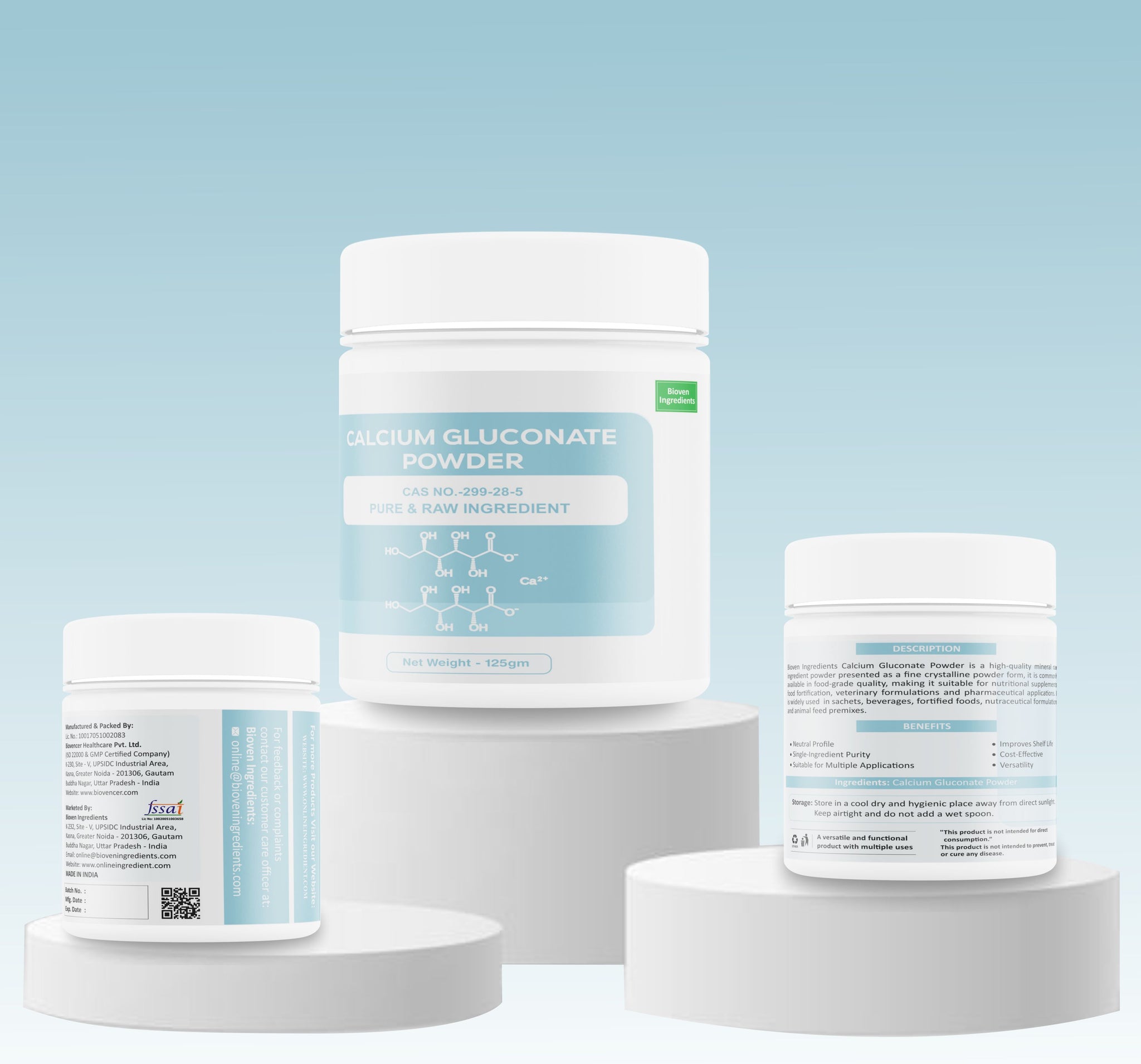 الوصف: تُعدّ شركة Bioven Ingredients المورد الرائد لغلوكونات الكالسيوم ، وهو معدن وعنصر أساسي لصحة الخلايا العصبية والعضلات والقلب. عند تناوله عن طريق الفم، يساعد الكالسيوم على شكل ملح الغلوكونات في الحفاظ على توازن مستويات الكالسيوم في الدم ومنع فقدان العظام.