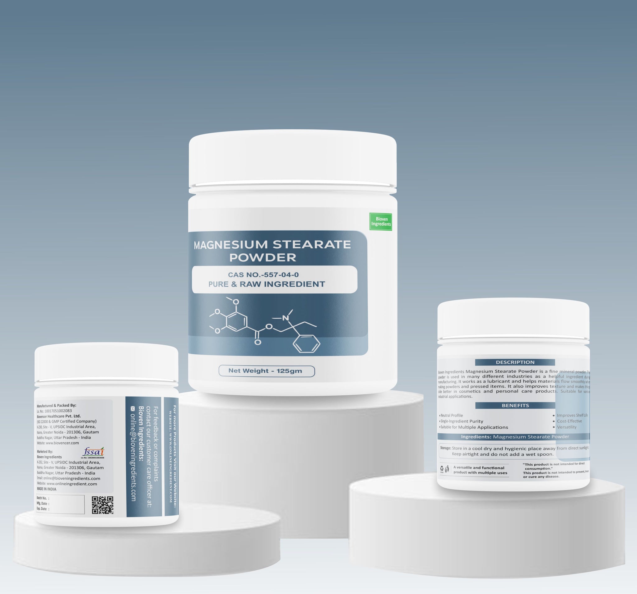 تُعدّ شركة Bioven Ingredients المورد الرائد لستيرات المغنيسيوم ، وهو مسحوق أبيض ناعم يلتصق بالبشرة وله ملمس دهني. وهو ملح بسيط يتكون من مادتين: حمض دهني مشبع يُسمى حمض الستياريك، ومعدن المغنيسيوم. يوجد حمض الستياريك أيضًا في العديد من الأطعمة، مثل بيض الدجاج. يُستخدم ستيرات المغنيسيوم، وهو مسحوق أبيض ناعم، غالبًا في مستحضرات التجميل المعدنية، ومزيلات العرق الطبيعية، وتركيبات المستحضرات. يتميز هذا المسحوق بخصائص مضادة للتكتل، وانزلاقية، وسلسة، وملمس مميز لظلال العيون وقواعد أحمر الخدود، بالإضافة إلى ملمس غير دهني للمستحضرات والكريمات.