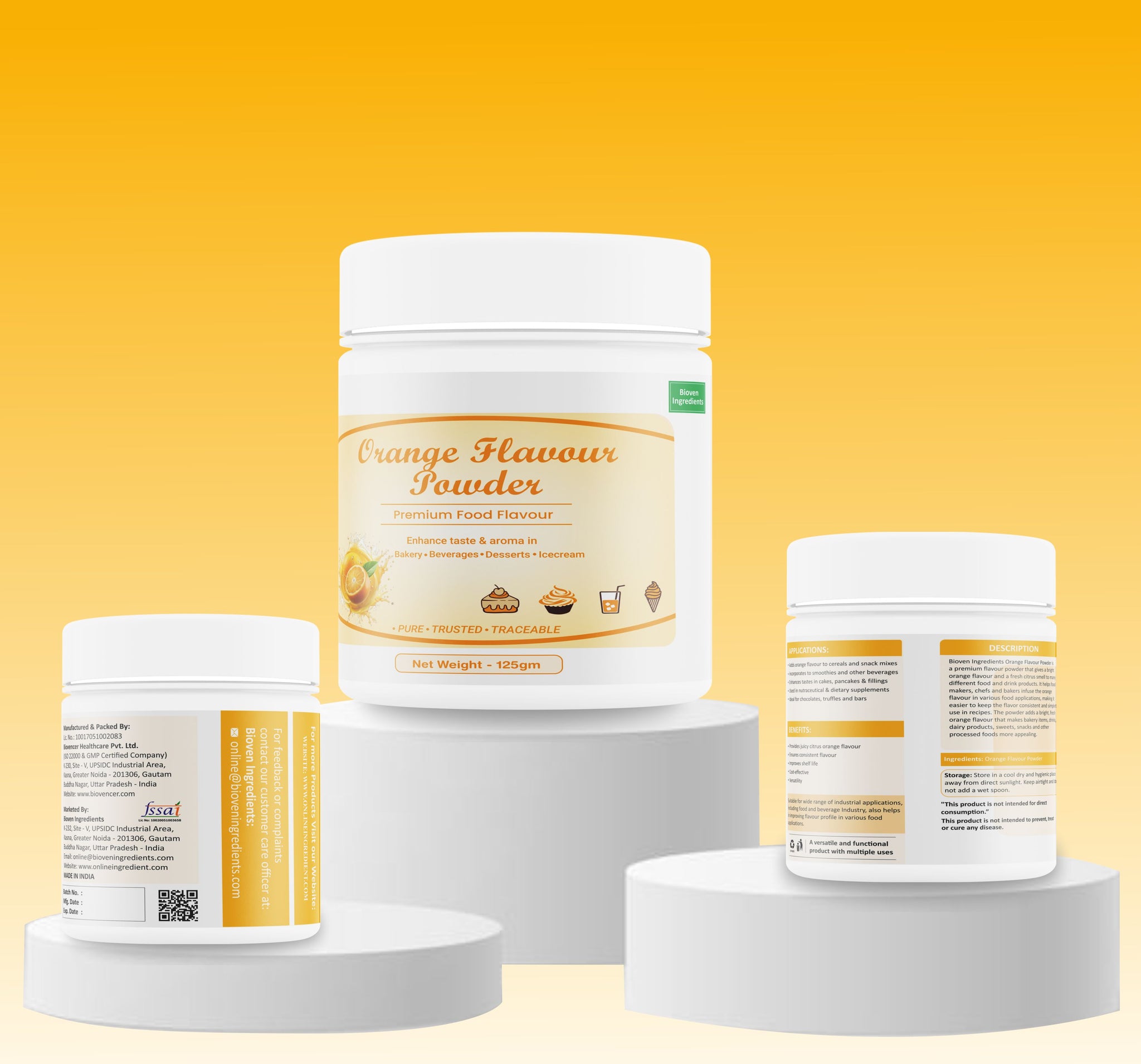 الوصف: تُعدّ شركة Bioven Ingredients المورد الرائد لنكهة البرتقال ، والتي عادةً ما تكون على شكل برتقال دائري أو بيضاوي، وتُستهلك طازجة أو في عصير. كما تُستخدم أيضًا في تحضير الفاكهة المطبوخة والمربى، وللاستهلاك كفاكهة مجففة، وغيرها.