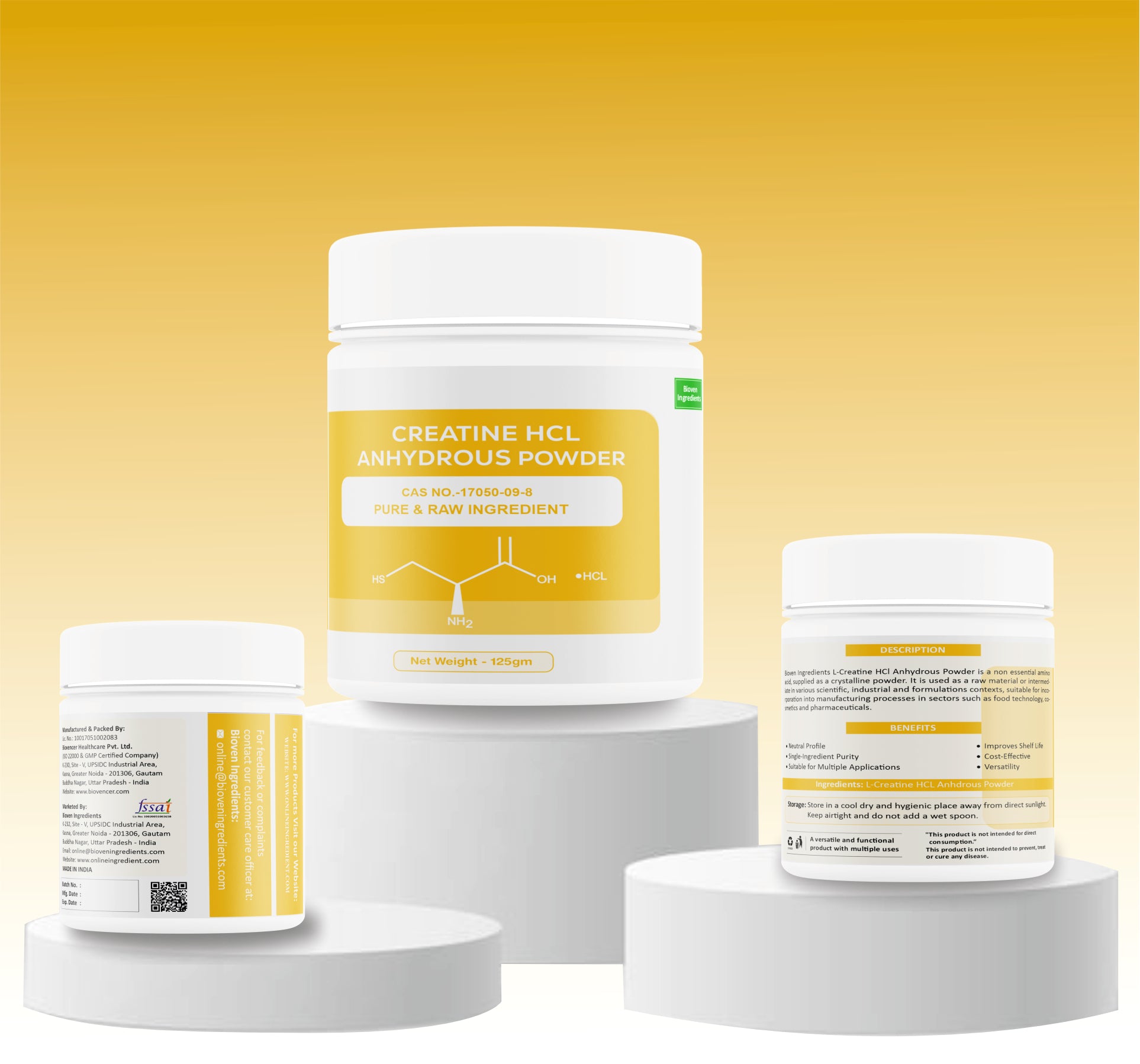 Bioven Ingredients is the Leading Supplier of Creatine HCL Anhydrous, A Non-Essential Amino Acid which helps to improve the solubility and absorption rates in the body . The 100% Pure Creatine HCL Anhydrous is bonded with hydrochloric acid that it will helps to digest more quickly in our body and taken up more fastly by our muscles cells. The Raw Creatine HCL Anhydrous helps to increase muscle mass, strength, and exercise performance. We Export Creatine HCL Anhydrous Powder for more than 25+ countries by which we are known as a Global Supplier, Distributor & Exporter of Creatine HCL Anhydrous.