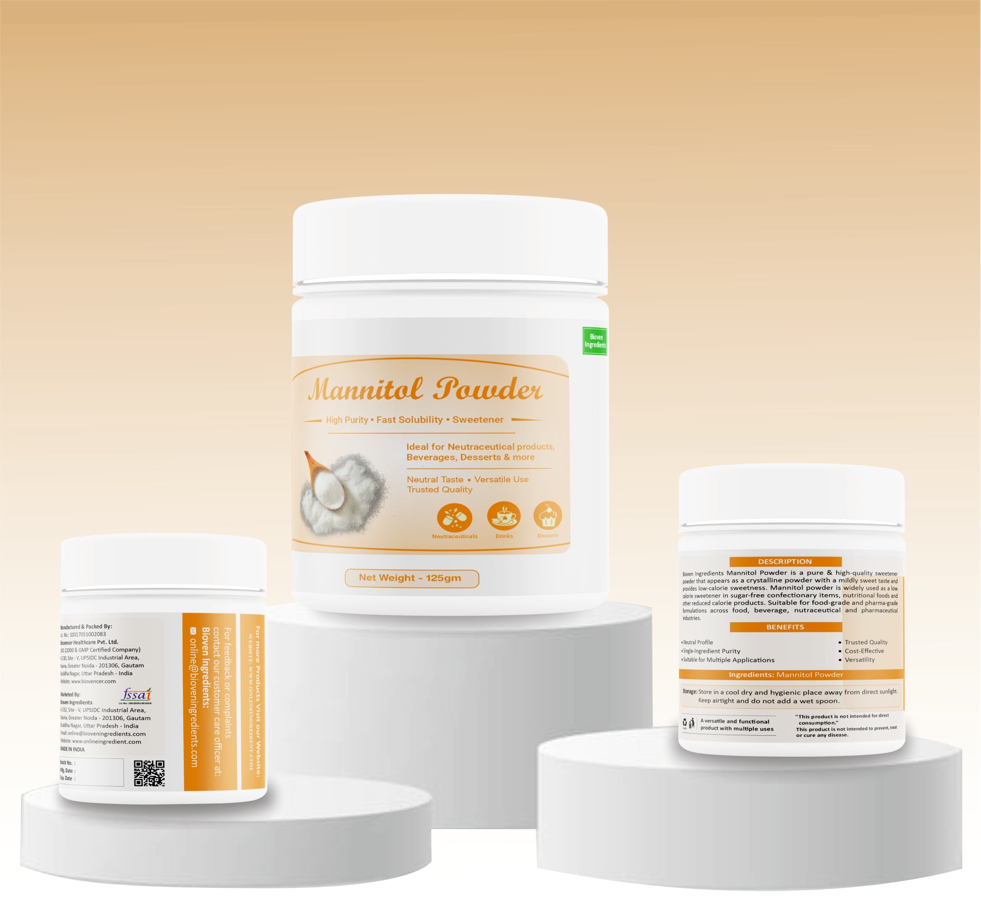 Bioven Ingredients is the Leading Supplier of Mannitol that is a type of sugar which is used as a sweetener. It is used as a low calorie sweetener as it is poorly absorbed by the intestines. It is used in sweetening power in a wide variety of food products.
