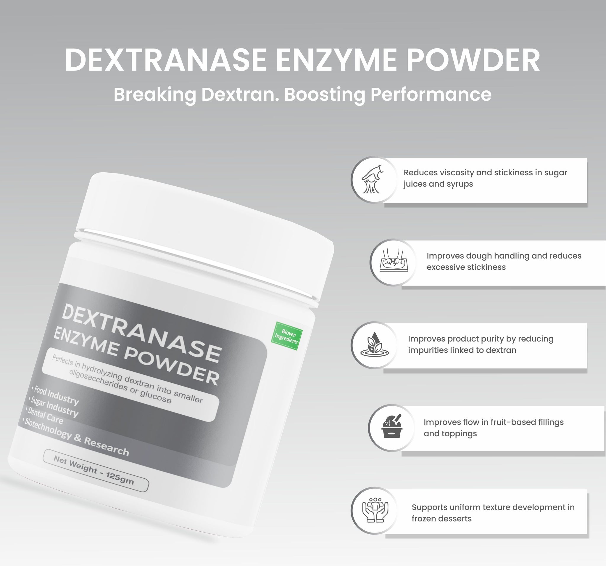 Bioven Ingredients Dextranase Enzyme Powder-125GM