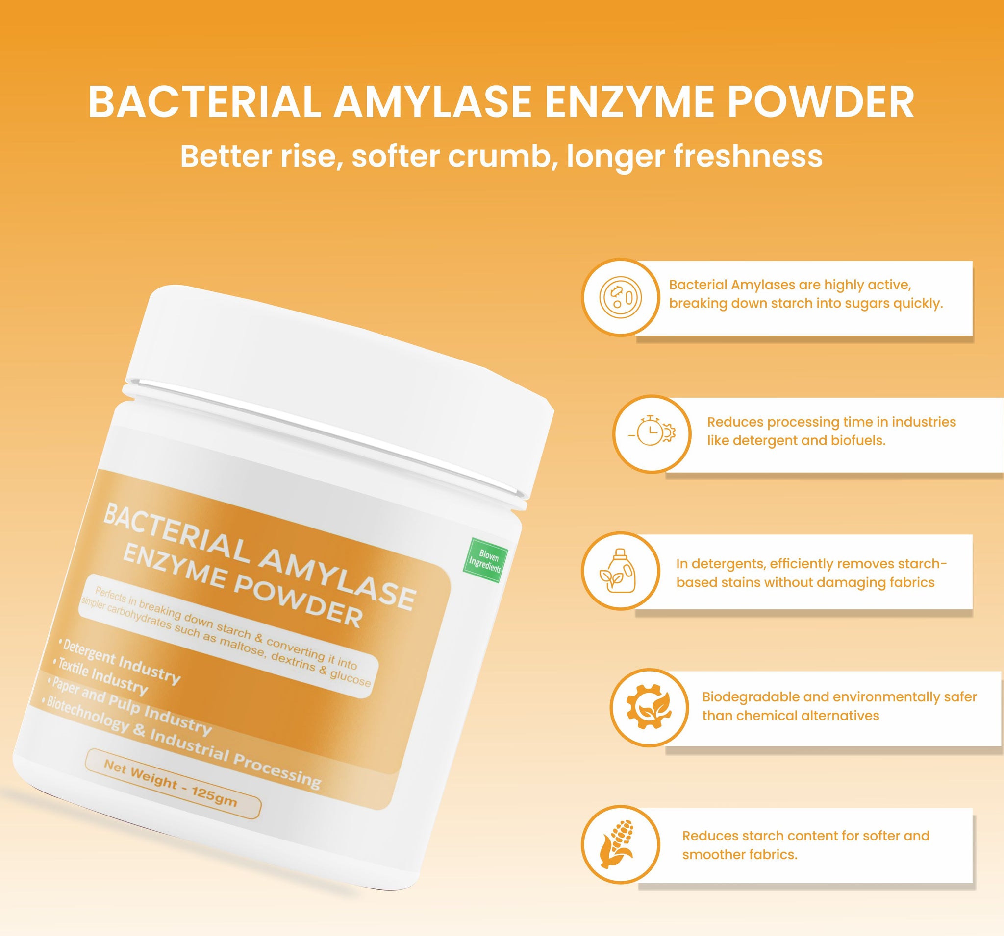 Bioven Ingredients Bacterial Amylase Enzyme Powder-125GM